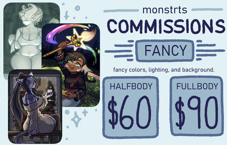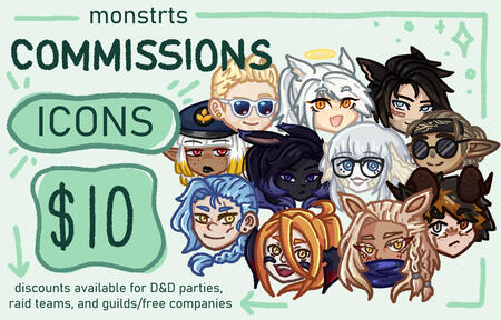 ⁕ Terms may vary depending on the type of commission.⁕ I reserve the right to discontinue and drop out at any time. Be respectful & kind. Cancellations due to disrespectful behavior are subject to fees.⁕ Commissions are for personal use only. You do not have the right to resell or profit off of my art in any way.⁕ I own all rights to my art. Putting my art into an AI engine is absolutely prohibited.⁕ Pricing ⁕⁕ Payment is in USD. Payments will be made in full, upfront, via an invoice through Paypal Goods & Services.⁕ Listed prices are base prices. Please, don't haggle with me. Prices are subject to change depending on complexity or what I'm comfortable drawing.⁕ Character sheets and original designs will cost an additional fee.⁕ Batches of icons will be subject to discount depending on the size and complexity of the party (I.E. familiars/companions) and can be discussed.⁕ Large revisions are subject to fees.⁕ If I feel I cannot complete a commission for any reason (injury, etc) partial refunds will be offered.⁕Client Obligations⁕⁕ Communication can be done through Discord or E-mail.⁕ Please respond in a timely fashion. I understand the time I am working may not be the time that works for you, but don't leave me for days without a response.⁕ Please be clear about the design of your character. Provide references, art, moodboards, personality, quotes, similar characters/inspiration, etc.⁕ D&D characters without original art will need multiple references/inspiration as well as text description. Do not take art of someone else's D&D character you found on Google and simply say "this is my character".⁕Process⁕⁕ Commissions generally take 3 weeks to 2 months. Icons generally take a week or less.⁕ Larger size art is A4. Icon sizes vary, at around 500x500.⁕ Progress images will be sent as needed! Sketches, details, etc. At some stages I will wait for approval before continuing.⁕ Sketch revisions, minor edits, and color changes are free. Anything larger than that (actually, can you change their entire hairstyle?) especially later in the process, will be subject to fees.⁕ Once the process is finished, I will give you a google drive file download with high quality PNGs. Please download these to your device in a safe place, as they may not stay on my drive forever!